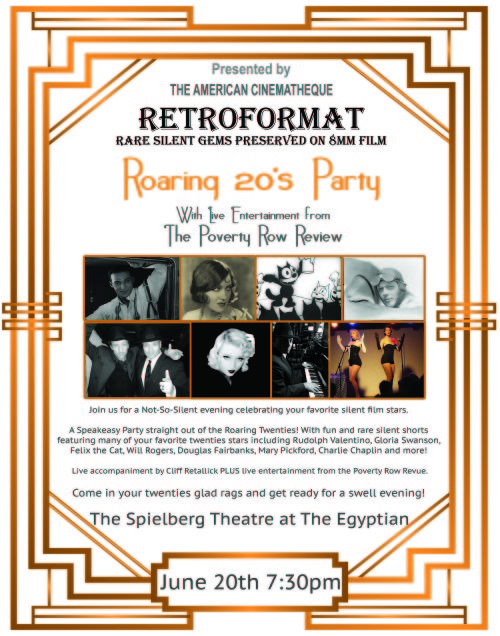 Don’t miss this jam packed evening presented by Retro Format and the American Cinematheque! Retro Format will be showing clips and shorts featuring your favorite silent stars like Rudolph Valentino, Gloria Swanson, Felix the Cat, Will Rogers, Douglas Fairbanks, Mary Pickford, Charlie Chaplin and more!